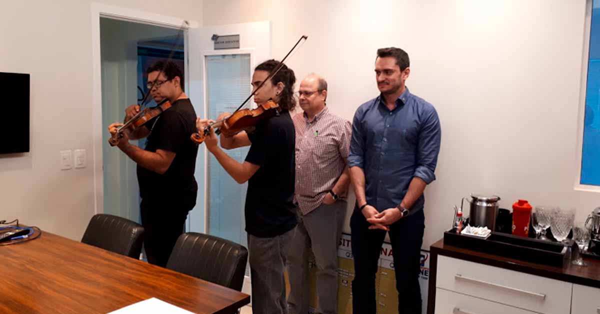 O projeto contemplado com o investimento do Grupo Cene é a Camerata Jovem Beethoven, que conta com mais de 30 professores e 1600 alunos em suas 10 unidades, e fez uma apresentação de violinos durante a cerimônia.